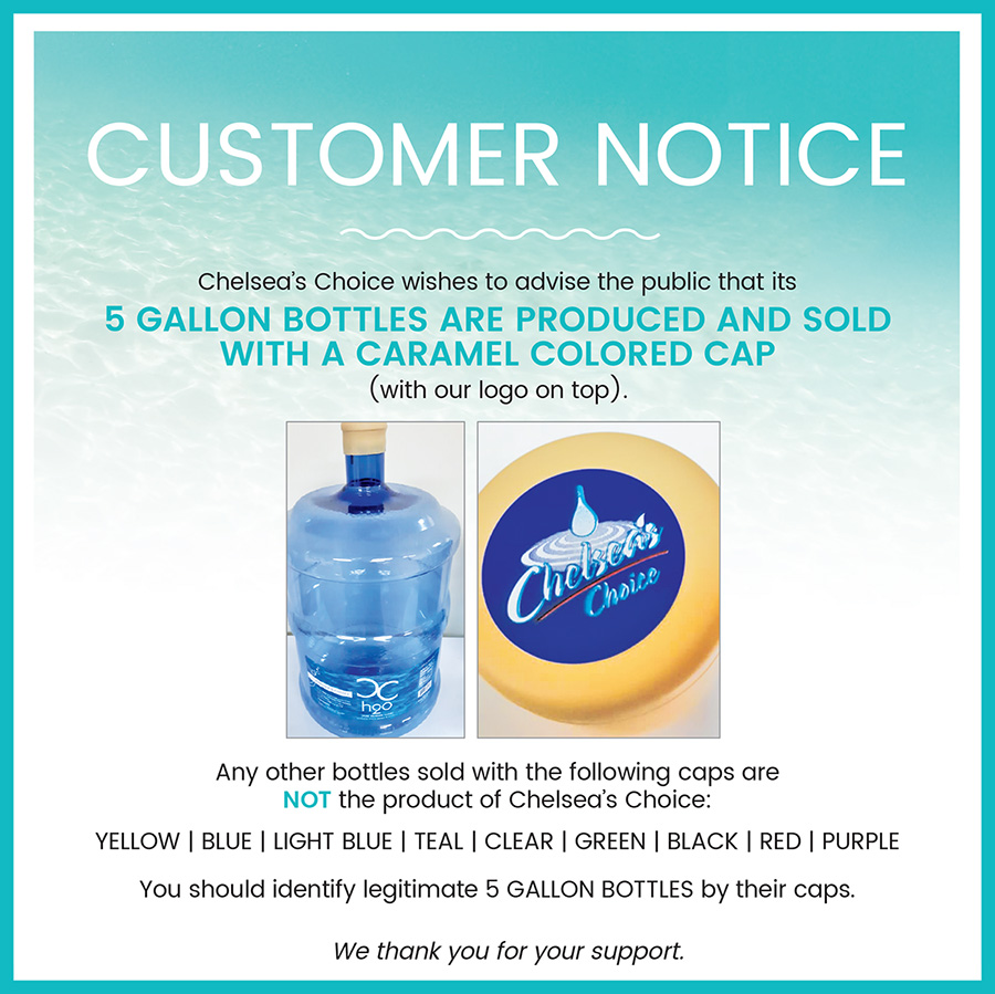 From personal size to multi-use, Chelsea’s Choice delivers the finest purified water to the Bahamas.
